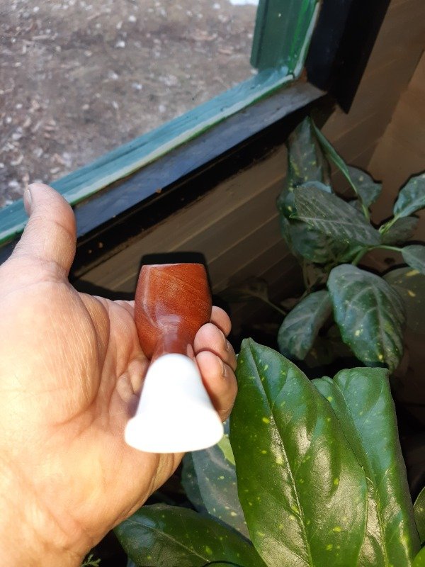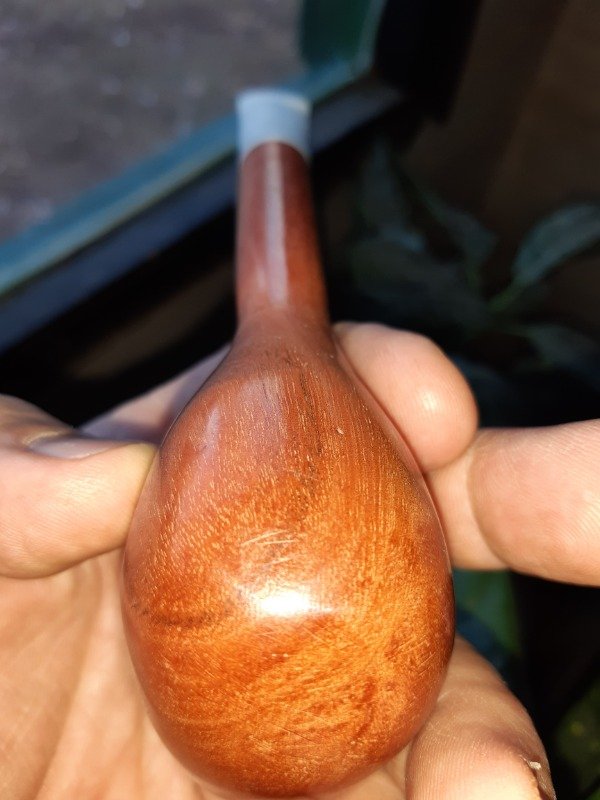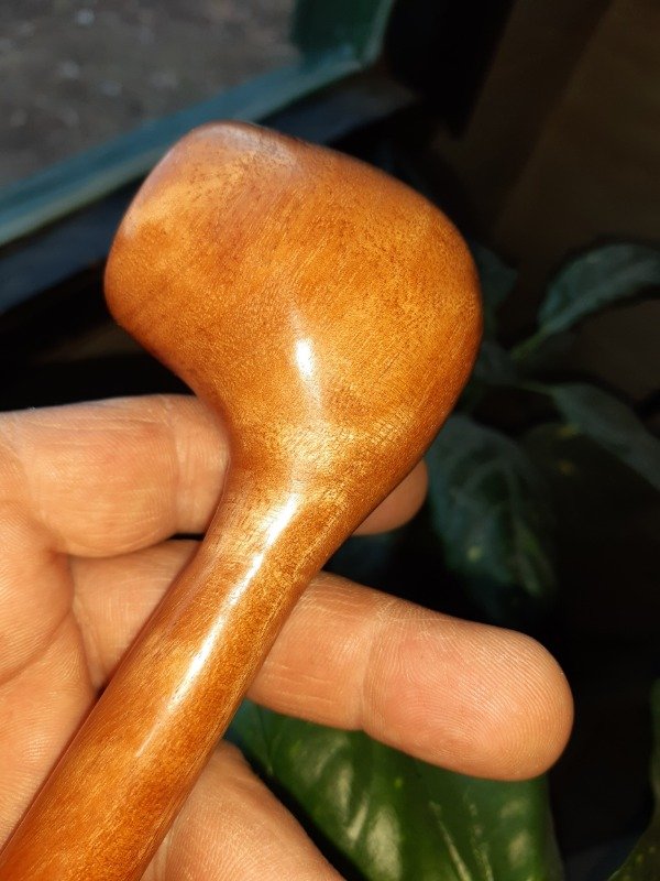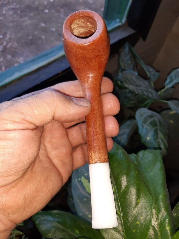 Ejemplar de pipa patagonica artesanal, recta en madera de algarroba con pulidos y encerados con cera de carnauba, tanto el cuerpo como la boquilla son confeccionadas a mano siendo único e irrepetible ejemplar siendo esta una de nuestras principales características como artesanos en pipas. esta recubierta en su interior de la cámara de la pipa con una protección y curado para su mayor durabilidad,