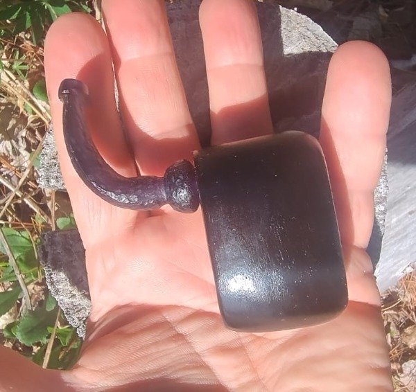 Creada totalmente a mano, esta pipa destaca por su elegante color negro intenso y su cazoleta en olivo teñido, que aporta un toque natural y sofisticado. La boquilla en acrílico negro tallado le da un acabado único y refinado. Una pieza hecha con pasión, ideal para disfrutar de momentos de relajación y sabor. ideal para una salida de pesca. con un hornillo de 2,5 cm de profundidad y su cazoleta con una altura de 3,5 cm.