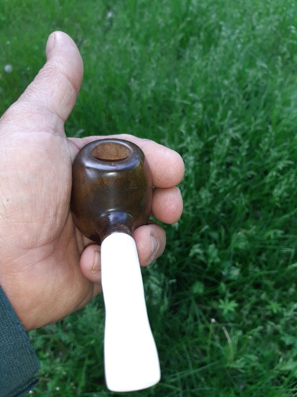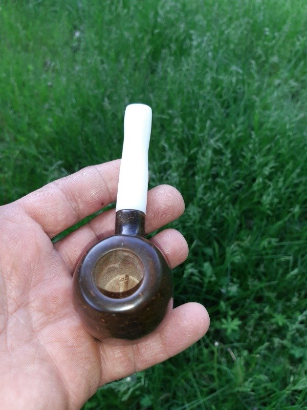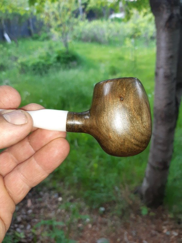 Este ejemplar realizado en maderas patagonica de Chacay unico por su confeccion, su diseño barrel en tonos marrones, con su boquilla en derlim blanco, una altura de 56 mm; un peso de 54 grs;un ancho de 45 mm su hornillo con un aprofundidad de 35 mm y apertura de boca ded 19 mm.