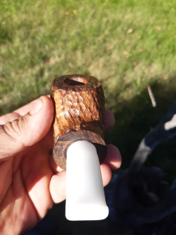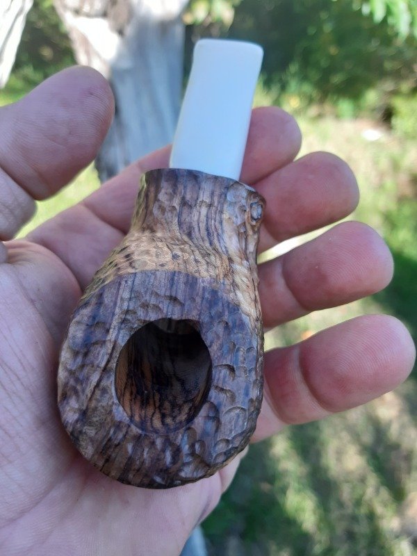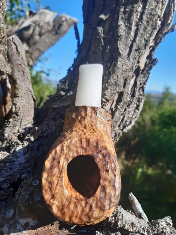 Una pipa realmente unica con un gran trabajo de tallado en unmadera urunday negro que tiene un abelleza inigualable, y con la calidad der la misma que hace ser una pieza de coleccionsu altura de 52 mm, ancho de 45 mm peso de 107 grs, hornillo conico de una profundidad de 39 mm y un diametro de boca de19 mm, largo total de 12 cm, su boquilla en derlim blanco con la caracteristica camara de aire que no sidentifica en nuestros modelos chubby.