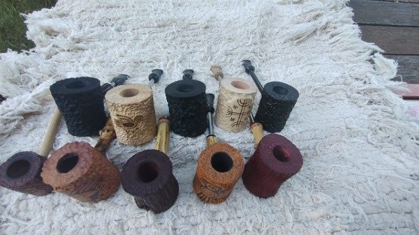 nueva linea de las consor toda tallada en su cazoleta con un tono unico en raiz de oliva, con detalle de grabado a amno imagen del condor copmo lo representaban los mapuches en sus dibujos, caño en bambu , con anulla de acrilico y acero quirurgico, unica