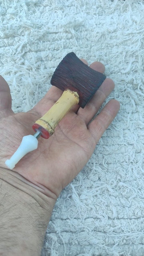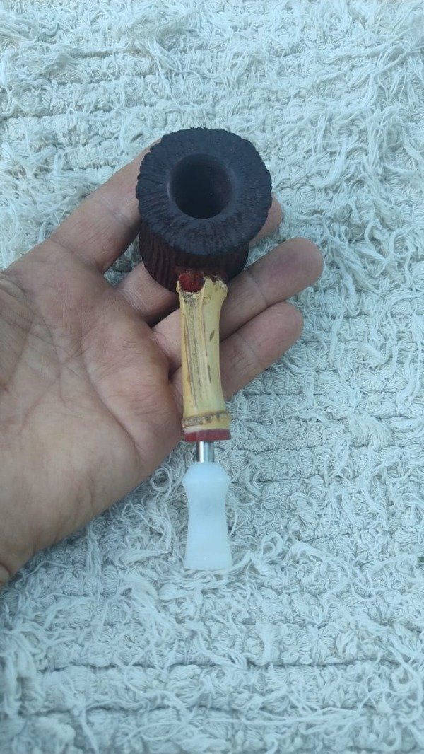 nueva linea de las consor toda tallada en su cazoleta con un tono unico en convinaciones de rojos y negros, caño en bambu, con anilla de acrilico rojo y acero quirurgico, boquilla en acrilico blanco