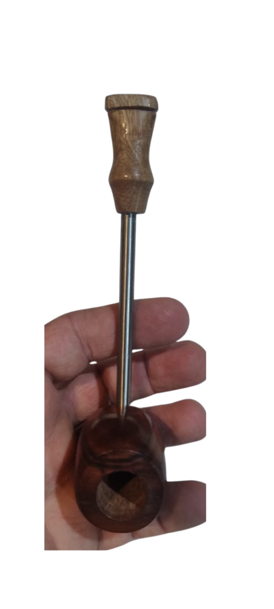 Cazoleta en viraro, caño en acero quirúrgico de alta calidad,boquilla en raiz de radal Patagonico. Peso 55 grs; largo17 cm; cazoleta alto 5 cm, ancho 4 cm; hornillo 18 mm en la base y 14 mm en el fondo, con formato conico lo que le permite tener mayor durabilidad a la vida de la cazoleta, profundidad 3,5 cm.