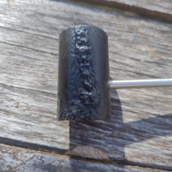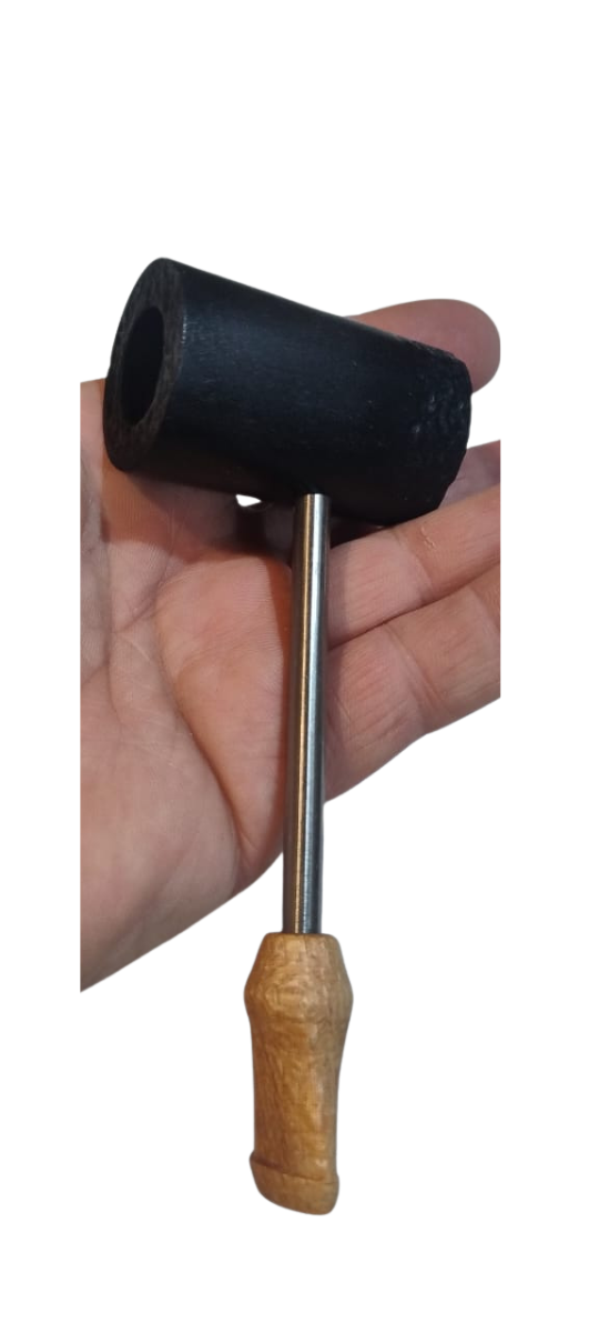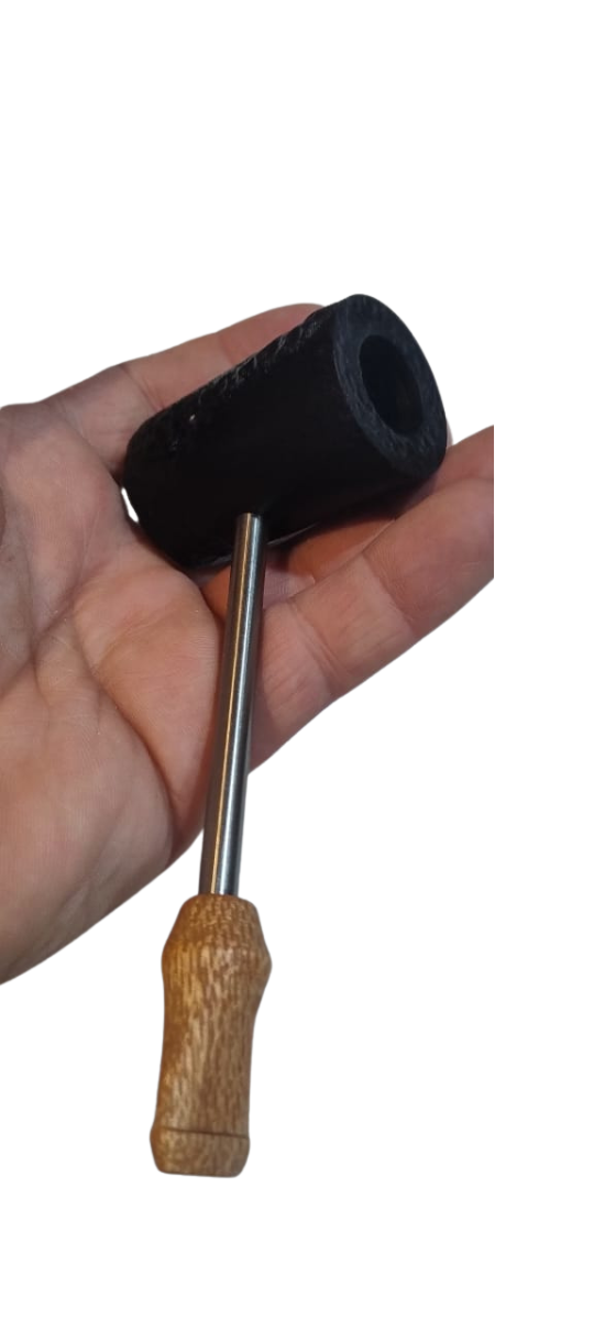 Cazoleta en raiz de olivo teñido en tres tonos diferentes de negros, tallada a mano en profundidad y sobre relieve, pulida y laqueada; caño en acero quirúrgico de alta calidad; boquilla en raíz de viraro. peso 60 grs; largo 14,5 cm; cazoleta 3,5 x 5,5 cm; hornillo 1,85 cm en la base y en el fondo 1,4 cm; (conico) de diseño propio para permitir mayor durabilidad a la vida de la cazoleta, profundidad 3,5 cm.