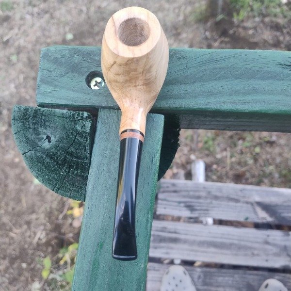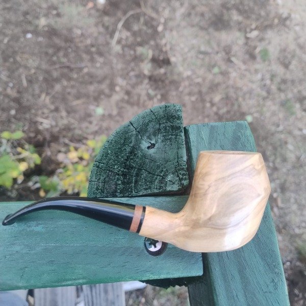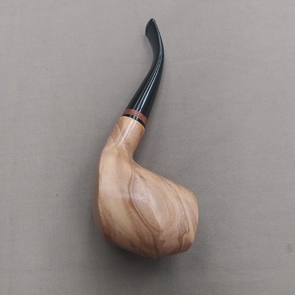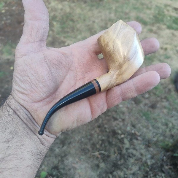 Curva de diseño propico donde su estilizado shape y sus delicadas lineas dan la elegancia de una pieza de gran categoria, su cazoleta en raiz de olivo y boquilla en acrilico con anillo.