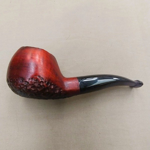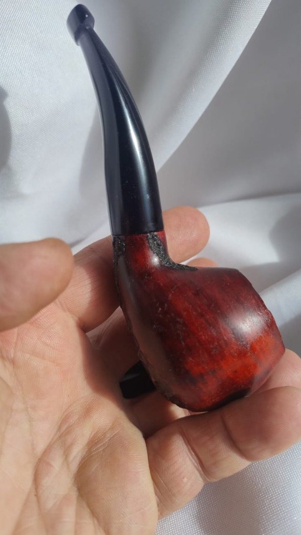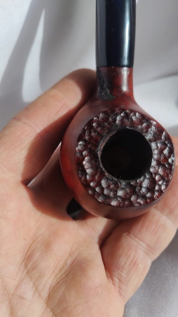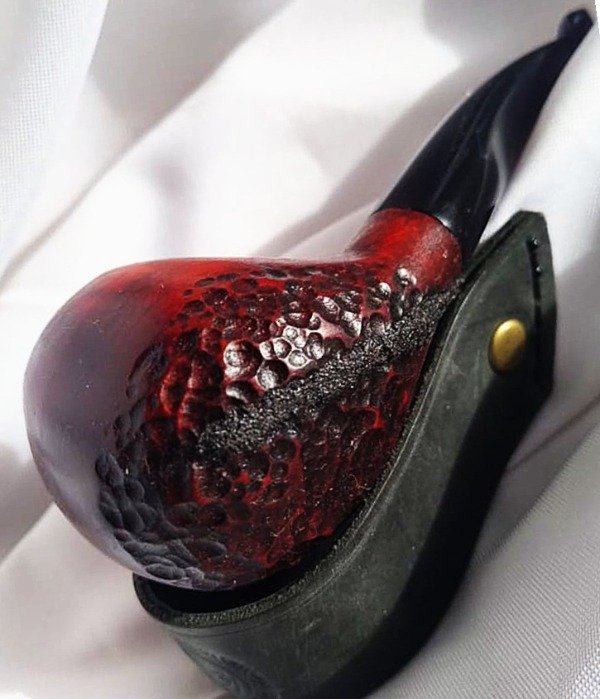Esta hermosa pipa esta confeccionada en raiz de olivo y mediante un prceso de blanqueamiento del taco para despues de darles los tonos buscados, que en su base inicial fueron teñidos con tintes mezclados con vino torrontes logrando un color unico que segun su veta fue adquiriendo diferntes tonalidades, tiene en su base un trabajo detallado y de realizado sobrerelieve; peso 74 grs; largo 12 cm, cazxoleta don un diametro de 48 mm x 53 mm , su hornillo con una profundidad de 30 mm, una apertura de boca de 18,5 mm termninando en su base en 14 mm, permitiendo en su formato conico mayor durabilidad a la vida de la cazoleta. de diseño propio.