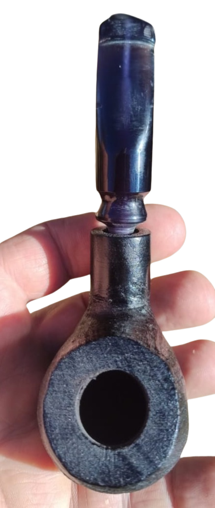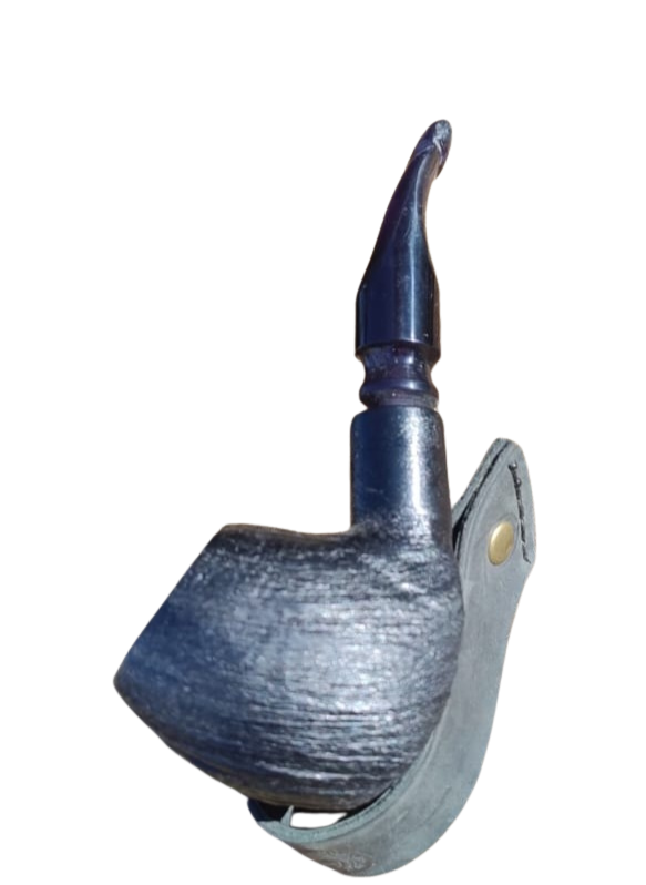 Confeccionado en Raiz de incienso, teñidoen 4 diferentes tonos de negro, tallado a mano y arenado siguiendo las vetas naturales de la raiz. Peso: 86 grs; de 5 cm de alto y un largo total de 15 cm, cazoleta de 46 mm x 50 mm; hornillo de 19 mm de boca y 33 mm de profundidad.
