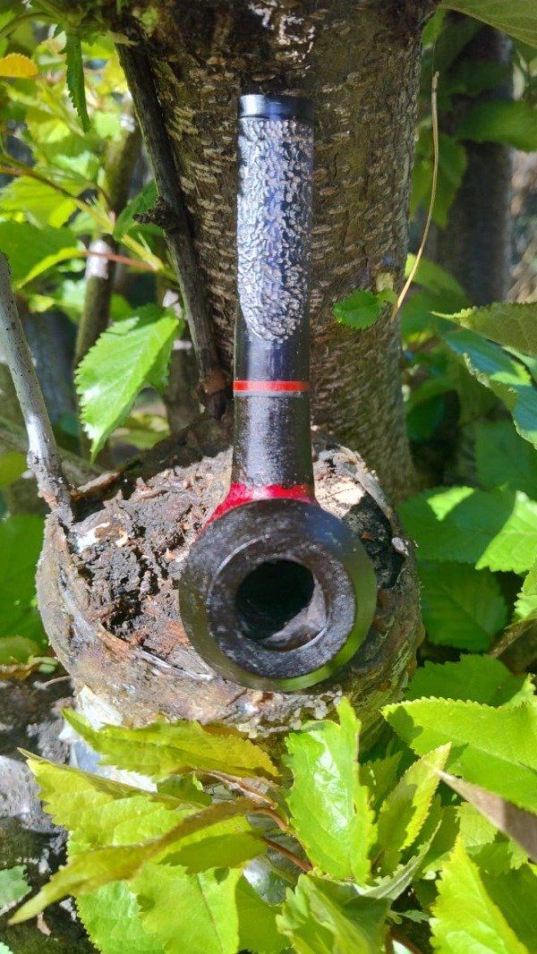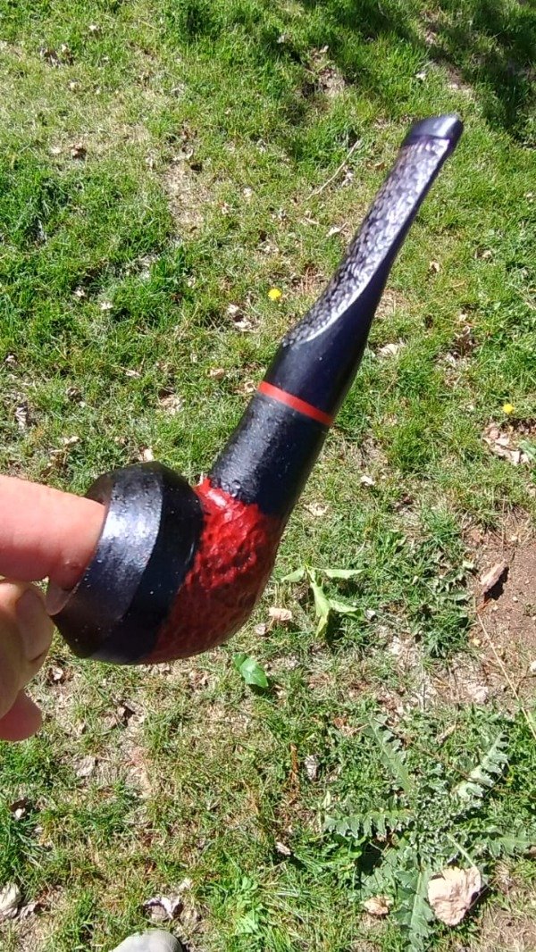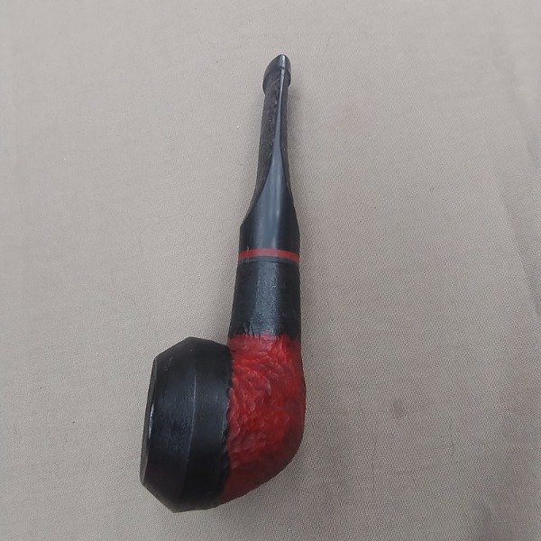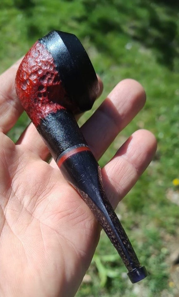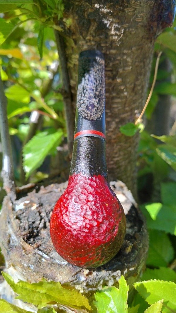 "Eleva tu ritual del tabaco con esta exclusiva pipa artesanal. El shape Dogo/Bull Dog, un clásico atemporal, se combina con una cazoleta de raíz de olivo tallada a mano y teñida en un llamativo negro y rojo, aportando un toque de distinción. La boquilla de acrílico negro, con su anillo de acrílico rojo y su diseño tallado que rinde homenaje a la familia Dogo, garantiza un confort excepcional. Cada pipa es una pieza única, resultado de la maestría artesanal."
