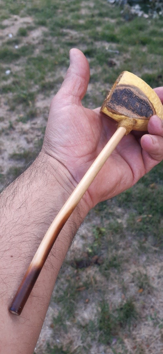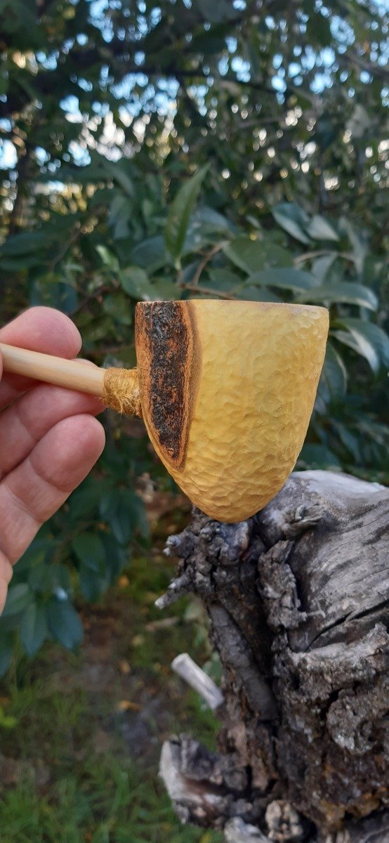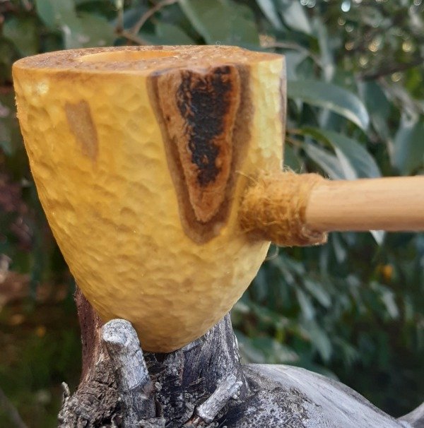 Esta pipa gandalf tiene identidad bien patagonica, puesto que s erealizo con una madera muy especian de la cordilleta (pal azul) con tono natutal en amaillo que le da la belleza unica en su tallado y par armonizar el modelo tiene una boquilla d ebambu, con un peso de 63 grs, un largo de 25 cm, altura de 65 mm, ancho de cazoleta de 53 mm, profundidad de hornillo de 37 mm, y diametro de boca de 19,4 mm.