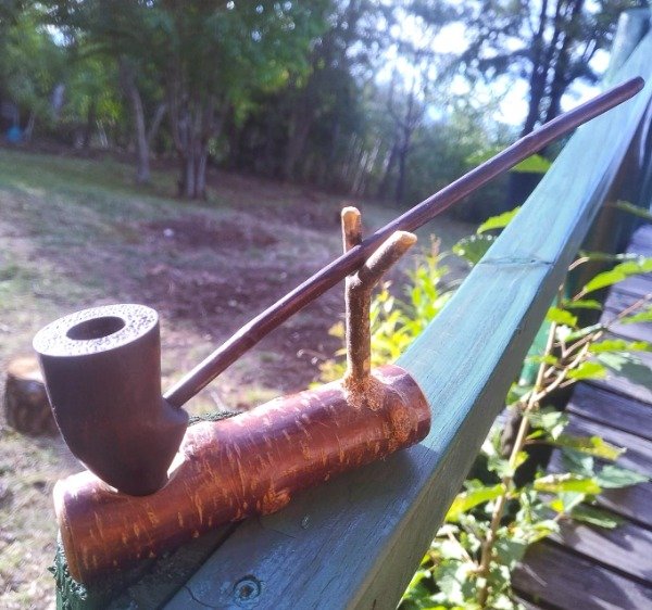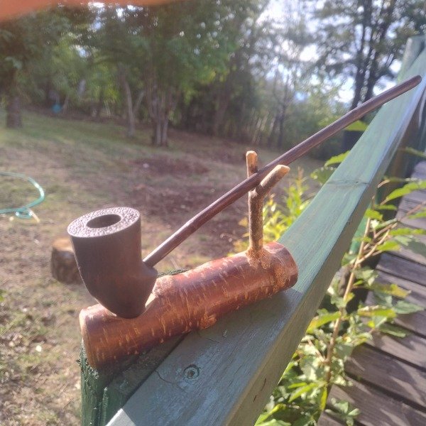 Dentro de la familia gandaf hemos realizado esta hermosa pipa con cazoleta en incieso, tallada amano u pirograbado con el arbol que representa a la casa Gondor, su boquilla como e sfiel a nuestro estilo en esta serie de pipas es realizada como los antiguos celtas, respetando las tradiciones para tal shape, en madera de fresno , su tono se llega al realizar 4 teñidos diferentes y conseguir el color deceado para la misma, en esta oportunidad la misma esta acompañada de un descanzo de pipa realizado especialmente para este modelo en tiche y guindo.el largo total de esta pipa es de 29 cm.
